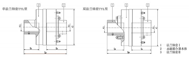 ■TYL型永磁耦合聯軸(保護)器作為基本型、可分為單法蘭軸套與雙法蘭軸套兩種聯接方式;