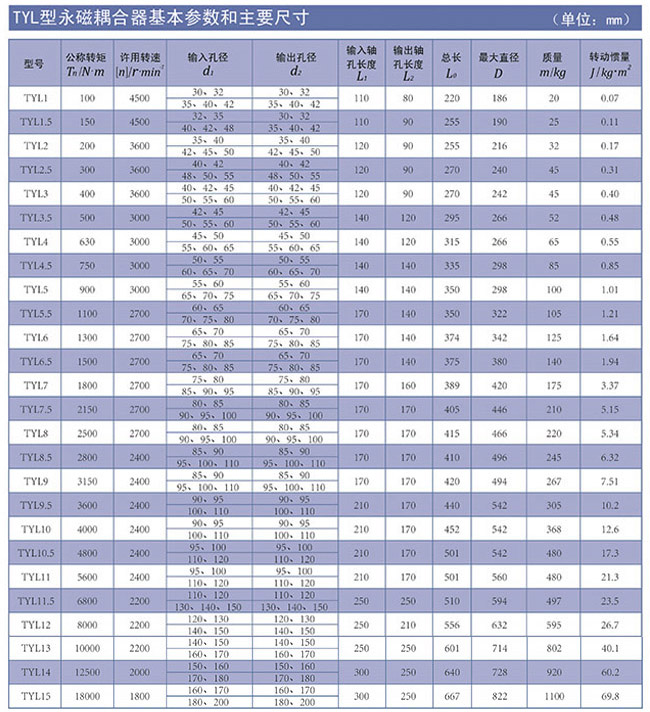 七、TYL型、TYLZ型、TYLX型永磁耦合聯軸(保護)器特點